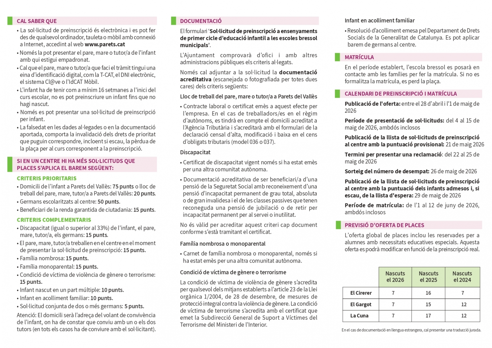 El període de preinscripcions per al curs 2026-27: del 4 al 15 de maig.